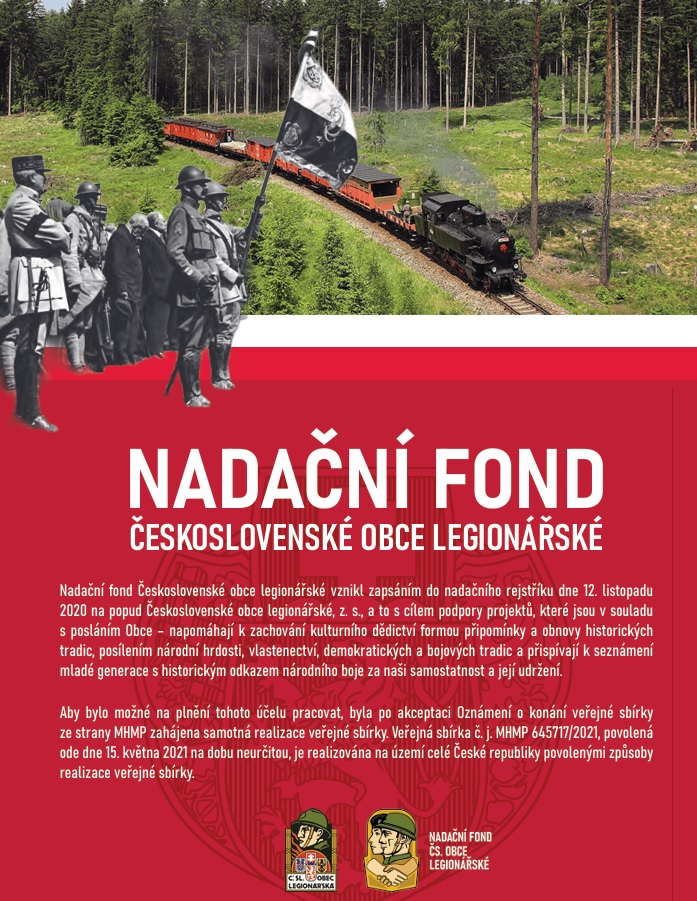 Mezi tyto způsoby realizace veřejné sbírky, kterými se snažíme naplnit účel a poslání nadačního fondu a celé Československé obce legionářské, z.s., patří shromažďování příspěvků na předem vyhlášeném zvláštním transparentním bankovním účtu zřízeném pro tento účel u Komerční banky, a.s. č. 123-2928070267/0100, sbírkovými pokladničkami a prodejem předmětů, kdy je příspěvek ve výši 40 % zahrnut v jejich prodejní ceně.