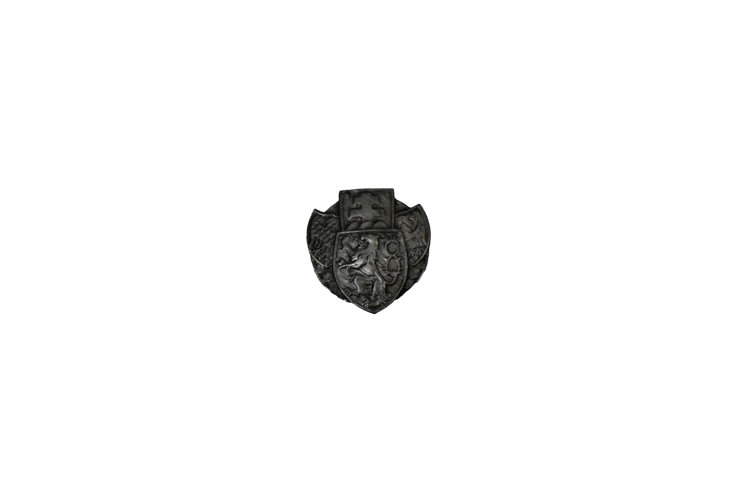 Našívací čepicový odznak vycházející z dobového originálu v barvě starostříbro. Rozměr: šířka 30 mm, výška 34 mm.