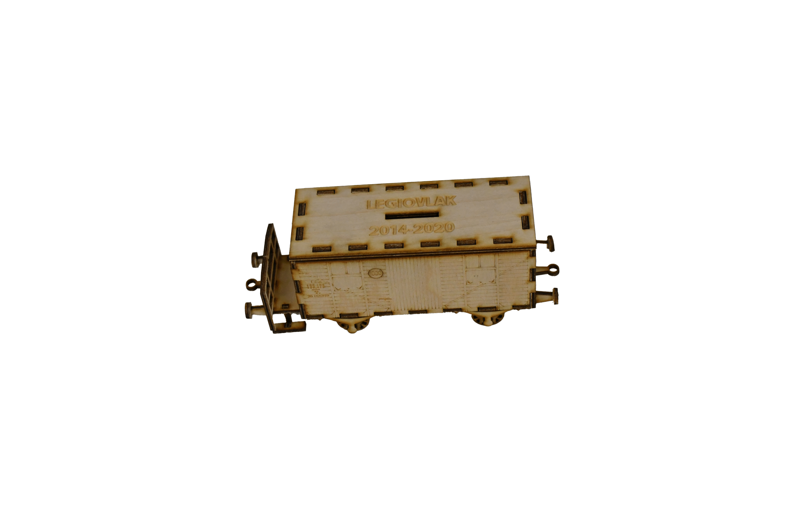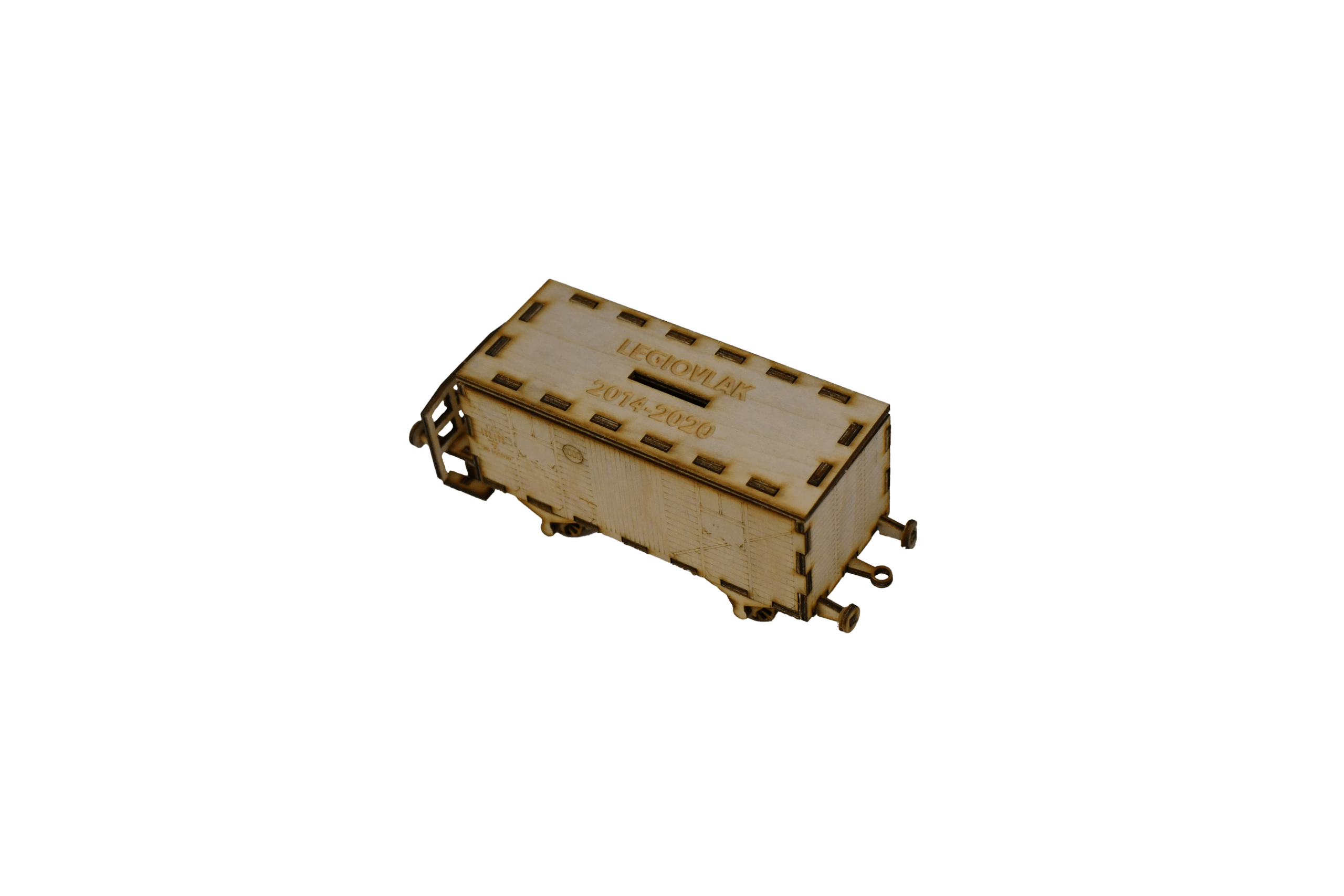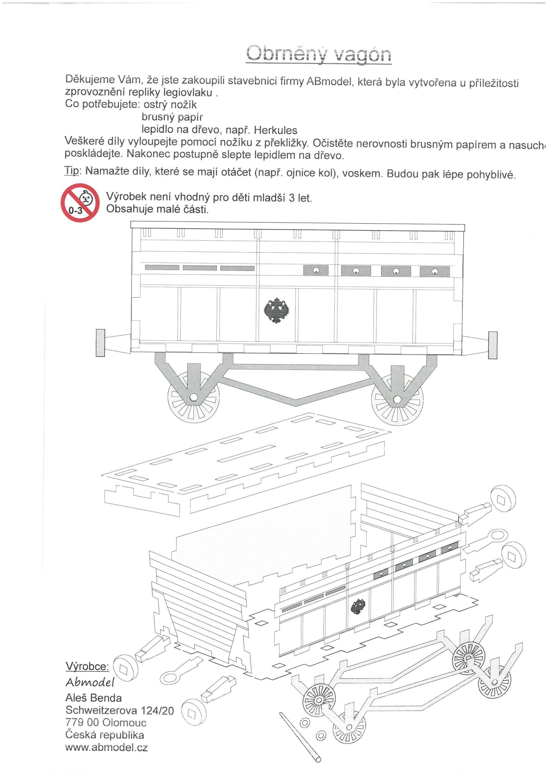 Model pancéřového vagonu, vypálený z překližky do formy stavebnice. Model je potřeba slepit lepidlem na dřevo (např. Herkules), které není součástí balení. Balení obsahuje jednoduchý návod ke složení.