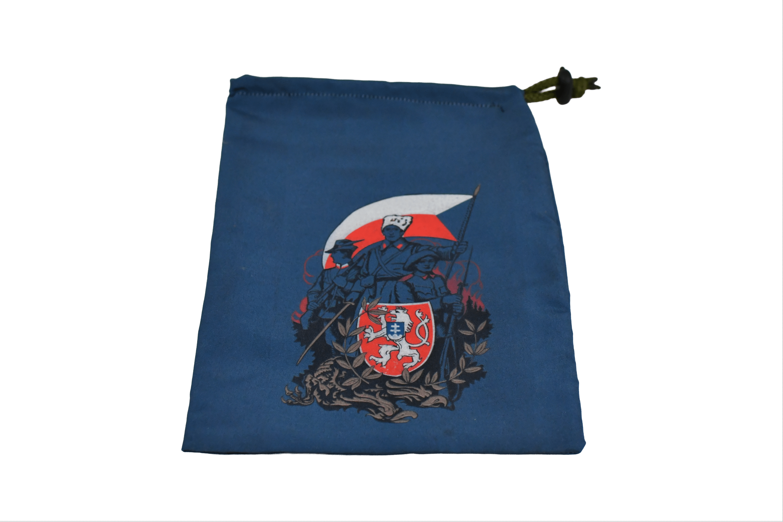 Látkový pytlík s legionářským motivem vhodný na uchovávání drobností. Vyráběno v Orlické továrně pytlíků, pytlík je ušitý z jemné prodyšné látky ze 100% polyesteru, potištěn kvalitním reaktivním barvivem.