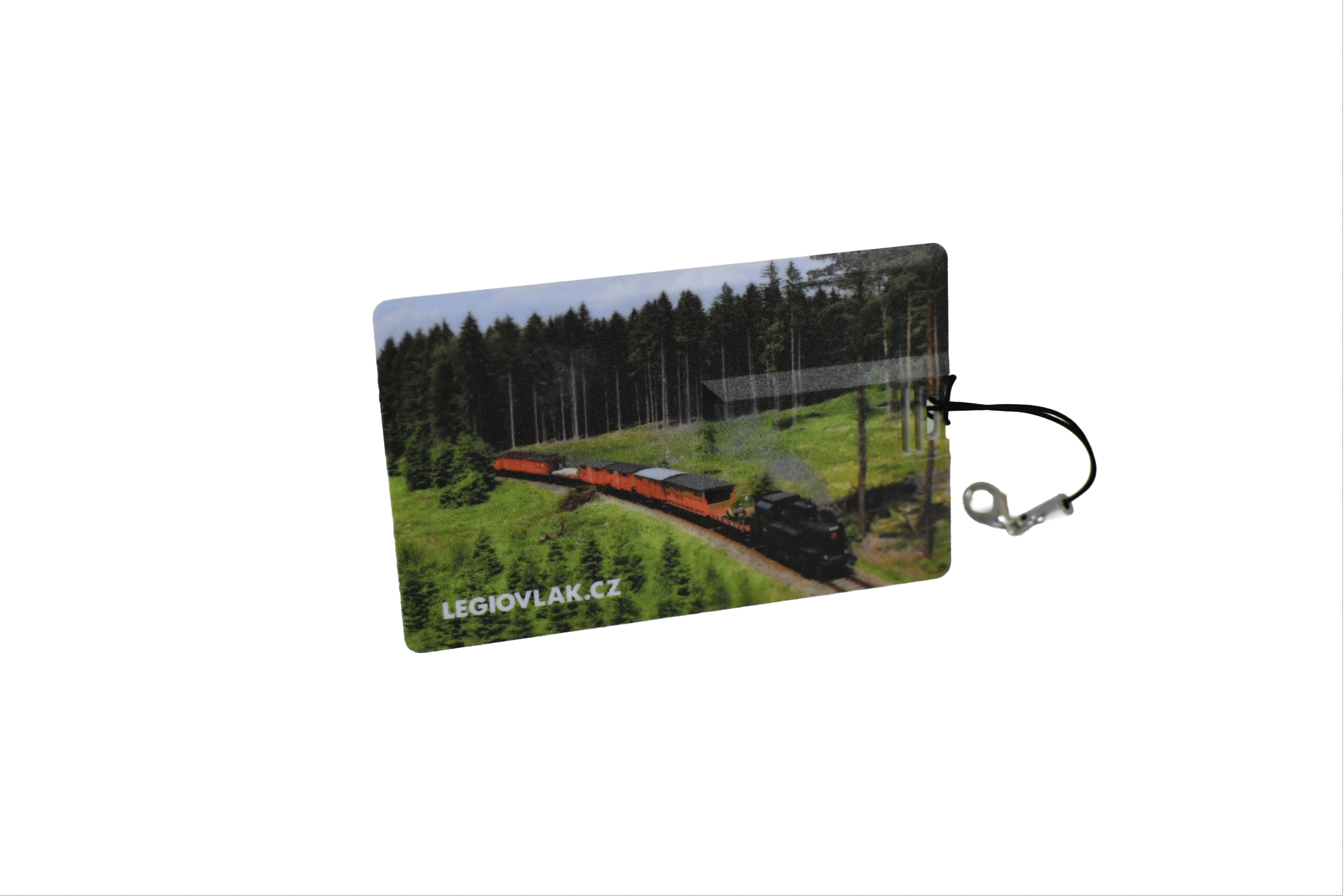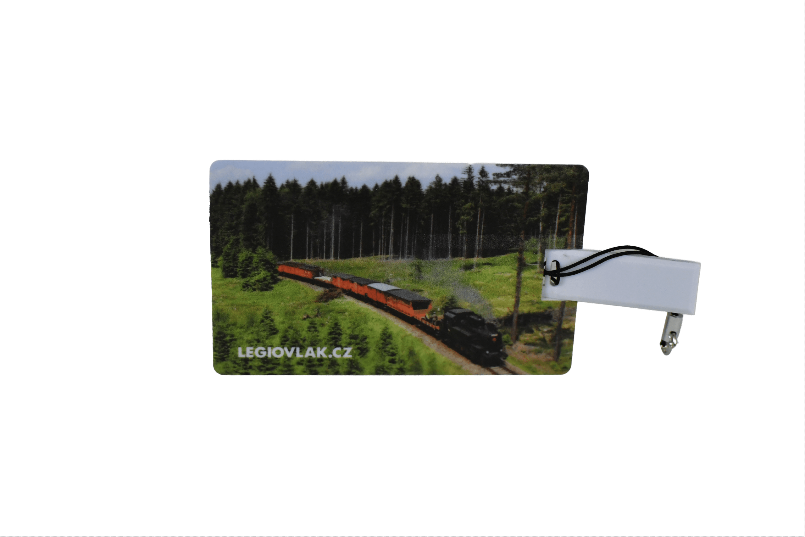 Ultratenký USB flah disk, který se snadno vejde do peněženky a který je potištěn motivem pojízdného muzea ČsOL Legiovlak.
